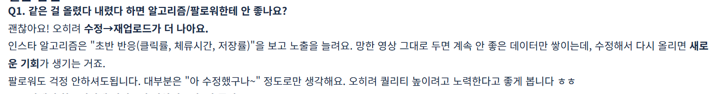 고생하셨습니다! 우선 질문에 대한 답변부터 드릴게요 :) 질문 → "망한 걸 그대로 두면 안 좋은 데이터만 쌓인다고 하셨는데, 초반 영상들 중 조회수가 300도 안 되는 영상들이 꽤 있습니다. 그런 것들은 지우는 게 계정에 더 이득일까요?" 답변 → 네 우선 기준을 잡고(조회수 1000이하 등) 삭제보다는 보관처리 해주시는 게 좋아요! 왜냐하면 삭제를 해버리면 나중에 "이 영상이 왜 안 됐지?" 하고 분석할 자료가 사라지거든요. 보관처리를 하면 계정에는 노출되지 않으면서도 나중에 참고할 수 있어서 일석이조입니다. 조회수가 현저히 낮은 영상들 위주로 보관처리 해주시면 될 것 같아요! 영상 피드백 드리자면, 우선 말씀해주신 과제 제출용으로 잘 제작해주셨어요! 딱 하나 보완한다면, 영상이 뿌옇게 나와서 화면이 잘 안 보이는 점이에요. 촬영하실 때 항상 렌즈를 한번 닦고 찍는 습관을 들이시면 좋겠네요! 사소하지만 화질이 선명해야 시청자가 끝까지 보거든요 :) 과제 고생하셨습니다 ㅎㅎ