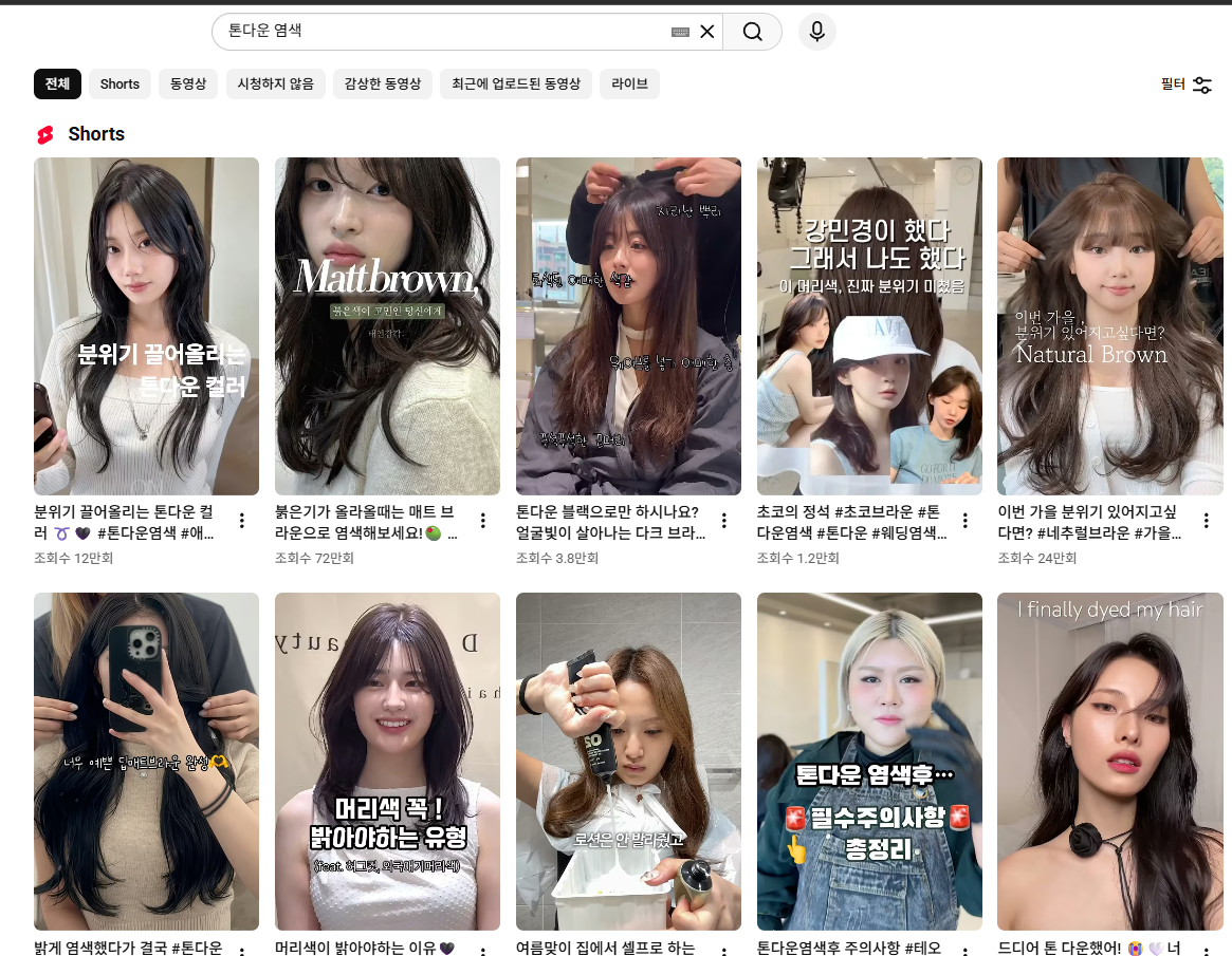 유튜브에서 '톤다운 염색' 키워드로 검색해보시면 레퍼런스가 많이 나올 거예요. 참고해보세요!
