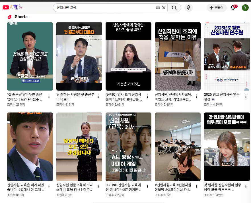 안녕하세요! 질문 주신 부분 하나씩 답변드릴게요. --- 1. 벤치마킹 방법 위에서 말씀드린 키워드로 검색해보세요. 그리고 직접 말해주신 키워드로도 한번 검색해보시고요. 유튜브에만 검색해도 여러 가지 주제와 색깔들이 보입니다. 예를 들어 "신입사원 교육"만 쳐도 다양한 형식의 콘텐츠가 나와요. 이 주제들을 하나씩 테스트해보시면서 본인한테 맞는 형식을 찾아가시면 됩니다. 스스로 찾아보시는 게 가장 좋지만 조언드리자면, 타겟이 기업교육컨설팅이잖아요. 그러면 그 타겟에 맞는 이미지를 전달해줘야 해요. 정장 착용, 격식이 갖추어진 느낌, 여유 있고 신뢰감 있는 분위기요. 잘 되는 레퍼런스들 보시면 이런 톤앤매너가 일관되게 유지됩니다. 그리고 PT하는 형식도 효과적이에요. 진짜 발표가 아니더라도 화이트보드나 칠판 앞에서 정장 입고 설명하는 형식으로 가시면 전문성이 확 살아납니다. 이런 식으로 본인 업종 키워드를 유튜브나 인스타에 하나씩 검색해서 어떤 형식이 반응이 좋은지 직접 분석해보세요. --- 2. 현재 콘텐츠 보완점 솔직하게 말씀드리면, 지금 콘텐츠의 가장 큰 문제는 전문적인 느낌이 부족하다는 거예요. 기업교육컨설팅은 B2B 비즈니스잖아요. 의뢰를 주는 쪽은 기업 담당자인데, 이분들이 콘텐츠를 봤을 때 "이 사람한테 우리 직원 교육을 맡겨도 되겠다"라는 신뢰가 들어야 해요. 그러려면 보여지는 부분을 신경 쓰셔야 합니다. 보완 포인트: - 복장: 캐주얼보다는 비즈니스 캐주얼 또는 정장 - 배경: 깔끔한 오피스 느낌, 화이트보드나 스크린 활용 - 말투: 친근하되 전문가다운 톤 유지 - 형식: PT 형식, 강의 형식, 현장 브이로그 등 권위감 있는 포맷 PT 느낌으로 가시거나, 실제 교육 현장에서 촬영한 영상을 올리시는 것도 좋아요. 현장감과 전문성을 동시에 보여줄 수 있거든요. --- 3. 계정 이름 개인 이름이든 회사 이름이든 상관없어요. 다만 전문적인 느낌을 내려면 회사 이름이 더 적합해 보입니다. 이유는 기업 담당자 입장에서 개인 계정보다 회사 계정이 더 공신력 있게 느껴지기 때문이에요. 나중에 개인 브랜딩을 강화하고 싶으시면 그때 본인 이름 계정을 별도로 운영하셔도 됩니다. --- 4. 업로드 주기 업로드 주기는 크게 상관없어요. 주 1회든 주 2회든 본인이 꾸준히 할 수 있는 페이스로 진행해주세요. 다만 핵심은 꾸준함이에요. 주 1회라도 6개월, 1년 일관되게 올리시면 충분히 성장할 수 있습니다. 처음부터 무리하게 매일 올리시다가 지치는 것보다 지속 가능한 페이스를 찾는 게 훨씬 중요해요. --- 정리하자면, 지금은 연습용 계정으로 여러 형식을 테스트해보시고, 본 계정 운영하실 때는 전문가다운 톤앤매너를 확실하게 잡고 가시면 될 것 같아요. 고생하셨습니다 :)