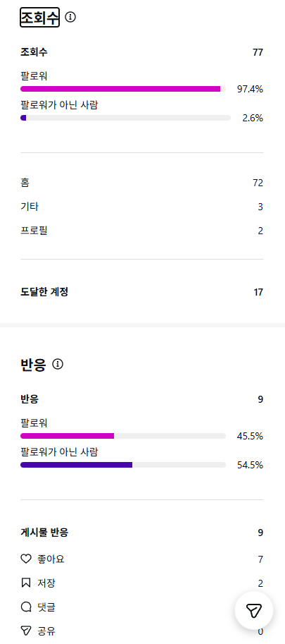 카드뉴스는 팔로워가 아닌 사람들에게 노출이 잘 안되는 느낌이 들었습니다.