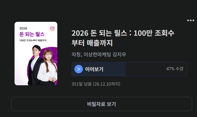 1. 릴스 최소 3개 이상 제작 및 업로드
