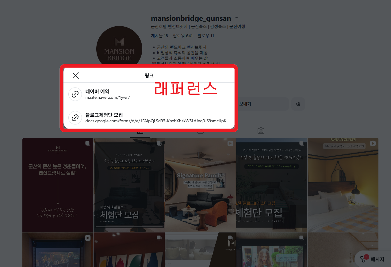 - 릴스보고 프로필 방문헀을때 사람들이 편하게 객실이나 풍경 볼 수 있도록