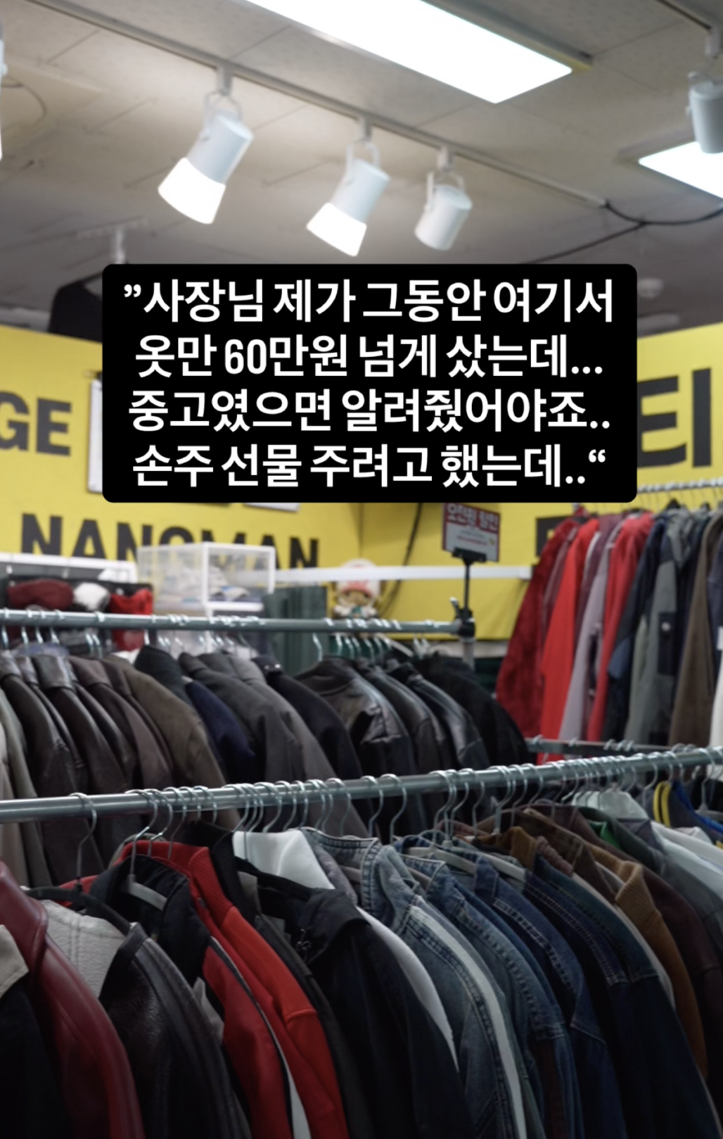 "사장님 제가 그동안 여기서 옷만 60만원 넘게 샀는데...중고였으면 알려줬어야죠..손주 선물 주려고 했는데"